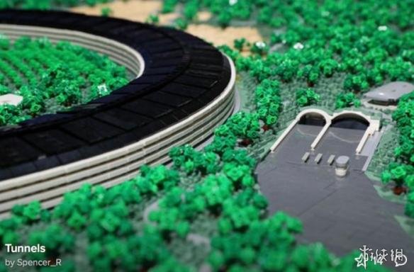 Spencer_R打造的Apple Park乐高场景细节十分丰富,史蒂夫乔布斯剧院及其圆形玻璃墙都被高度还原,还有园区中的太阳能电池板,隧道,对苹果来说极具历史价值建筑Glendenning Barn也在乐高场景中被还原。