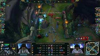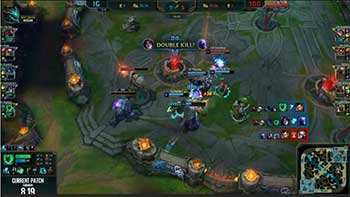 双方打野河道相遇,赵信躲掉青钢影E,随即双方队友支援,100T拿下两个人,完成0换2