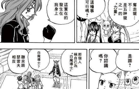 本话开头就是杰尔夫走街串巷在各个公会打问小迷妹的线索,最终发现竟然在妖精的尾巴,还对其吐槽了一番,经过杰尔夫的解说,这个妹子危险度与杰尔夫相同,被称为白色魔导士,并且还是存活了100年的大魔女!