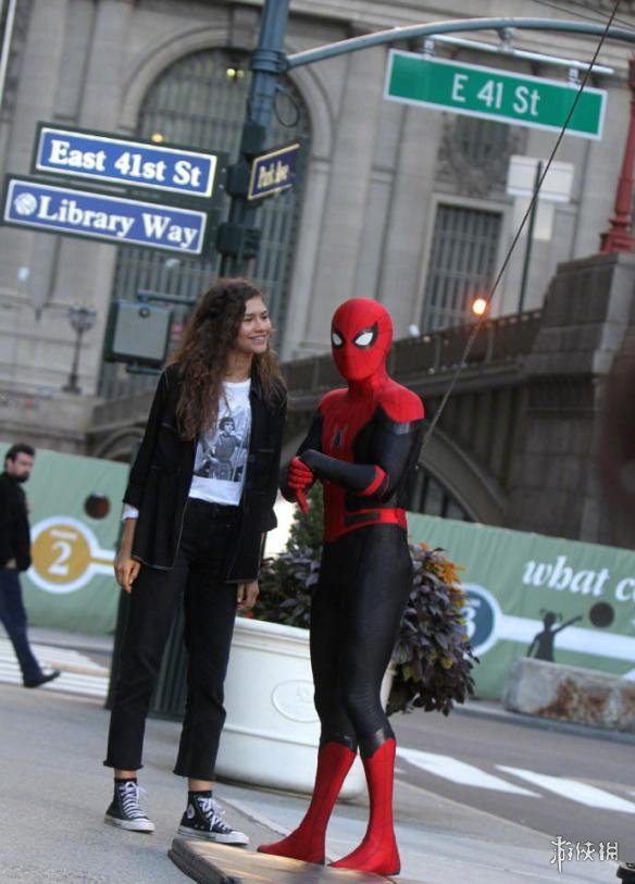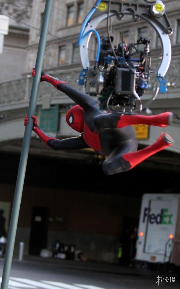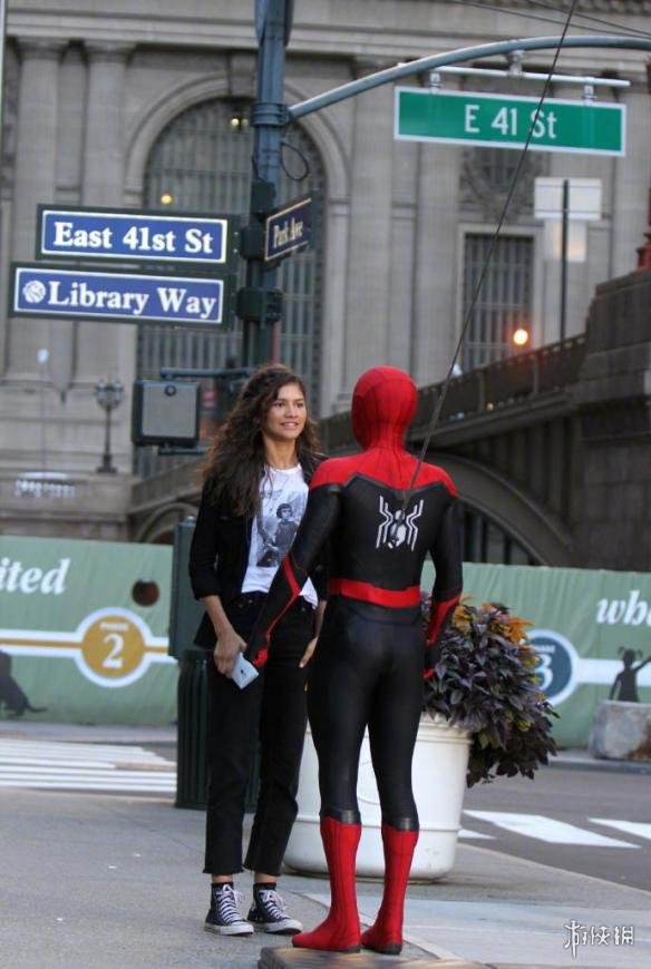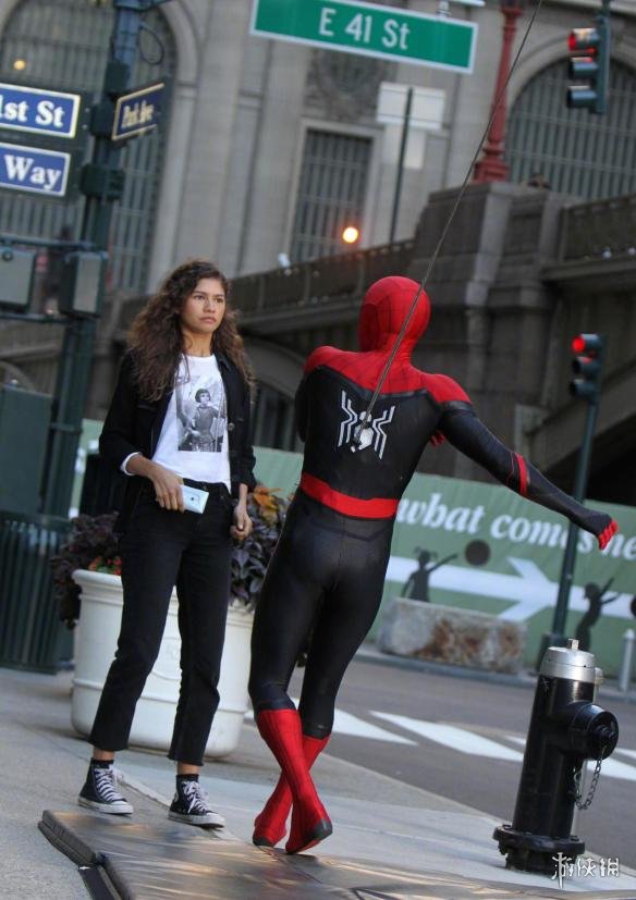 《蜘蛛侠:远离故乡》近日的曝光频率有点高,前两天刚发布了一组纽约街头“英雄救美”片场照,今日又来一组,从环境和服装可以看出两组照片是在拍同一戏份。小蜘蛛身穿战袍与赞达亚在街头交谈,身后还吊着威亚绳索。已经健身很久的荷兰弟明显壮了不少,腿上的肌肉快要包不住了。
