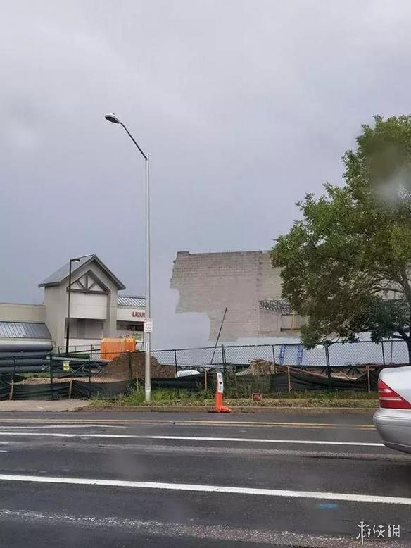 比如这栋建筑墙上的油漆和天空的颜色完美一致,看起来像道墙飘在空中。
