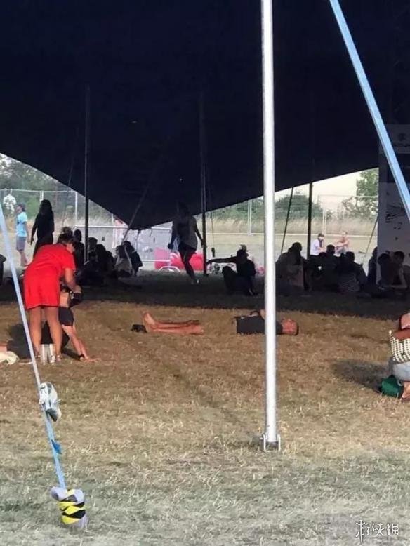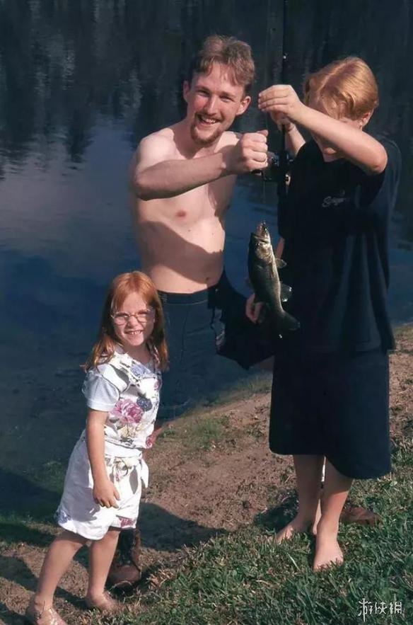 这个爹张开腿,裤子颜色又和湖水颜色接近,导致看起来下半身隐形了。。