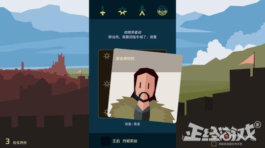 游戏的玩法和王权系列之前的玩法一样,选择左右即可,需要在四个力量之间进行平衡,根据剧情选项依次解锁八大角色,不同的角色有各自的事件牌,也有一些通用的牌。剧情上有GOT原作作为依托,这一代的事件牌前所未有的丰富,而且不少剧情相当有趣,还圆了剧粉的一些梦想。