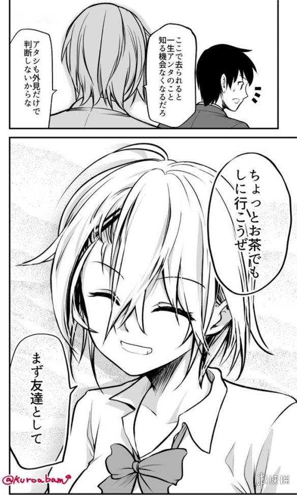 在推特和P站投稿漫画和插图的同人作家kuroabam,近日在推特上推出了一段男生向不良妹子告白的小故事。在这个故事中,男生鼓足勇气向女主告白称:“喜欢你!请与我交往吧!”不过女主却回了一句“除了日常问候,这是第一次和我说话吧?”在男主肯定了之后,女主又问:“交往是干什么?”男主不知所措的回答了:“一起回家,休息一起出去玩……”