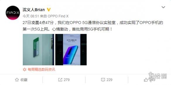 在小米MIX 3曝光支持5G,有望成为全球首批5G商用手机后,OPPO也实现了支持5G。