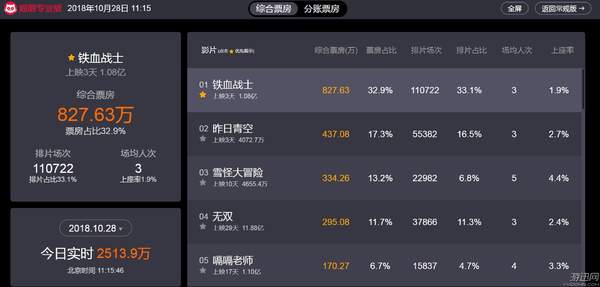 最近有不少新电影上映,其中好莱坞新版《铁血战士》在上周五上映后,口碑票房都不错,并且获得了单日票房收入冠军。据猫眼票房专业版数据显示,《铁血战士》上映第三天累计票房突破1亿元人民!遥遥领先同期上映的其他影片。