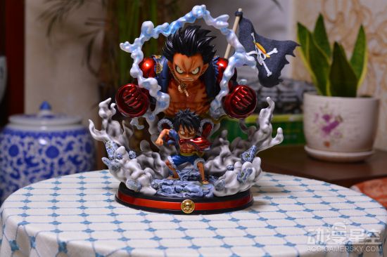 《海贼王》中的路飞拥有橡胶果实能力和武装色霸气,四档就是路飞将两者融合使用的强力技能。近日由BBT工作室推出的四档路飞发售,雕像采用了SD比例的造型,一小一大两个路飞被霸气环绕,展现了路飞变身四档迎战强敌的情形。