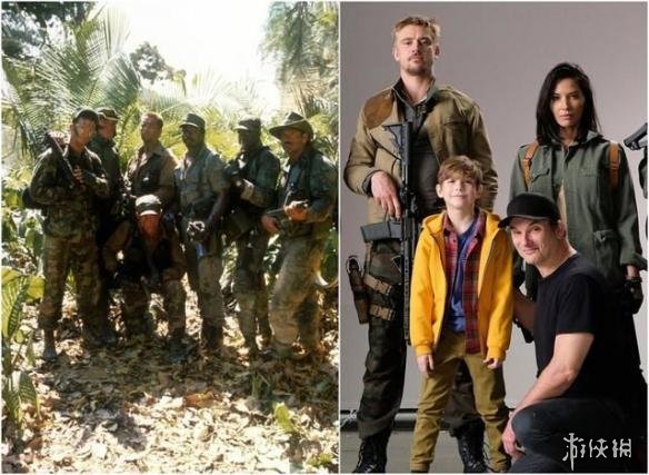 《铁血战士1》演员沙恩布莱克(左图左一)和《铁血战士4》导演沙恩布莱克(右图蹲着的)