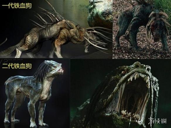 电影中的巨化铁血带着两条铁血狗追杀到地球,而铁血猎犬是对于2010年系列第三部《铁血战士S》中设定的一种延续,只是两部电影中铁血狗的造型和性格上差异非常大,第三部中的铁血狗造型犀利,并且十分凶残,只是很容易就被枪扫射至死,这一部中的铁血狗则更像是地球上狗的放大版,只是安了一个铁血脑袋,并且也具有类似于巨化铁血的外骨骼,机枪扫射也没有大碍,但是在电影里被打中脑袋之后竟然就归顺地球人,这情节有点太扯。