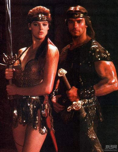经典版《女王神剑》,布里吉特·尼尔森扮演的索嘉、阿诺德·施瓦辛格扮演的柯南