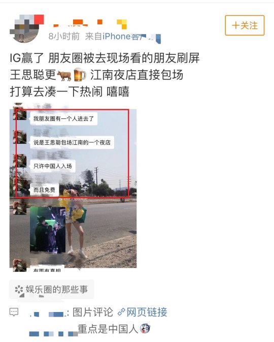 11月3日S8比赛结束后,有网友爆料,王思聪包下了韩国江南的一个夜店。自己投资的战队拿了世界冠军庆祝是必须的,所以夜店小王子可能会迟到但一定不会缺席。