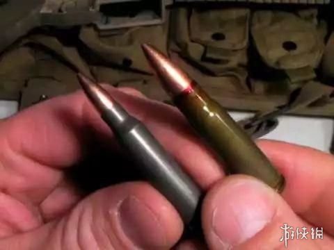 右:AK47的子弹(右)远大于美制武器的5.56毫米子弹(左)(图源:youtube)