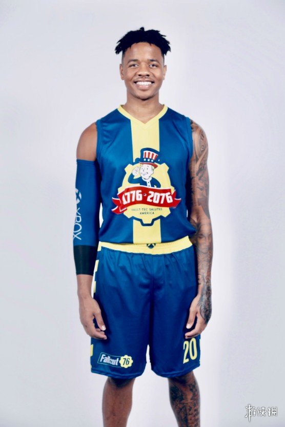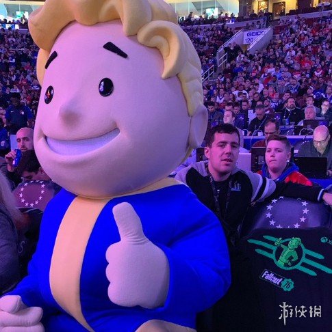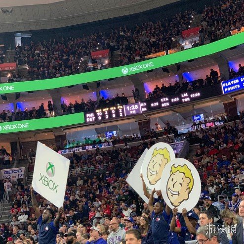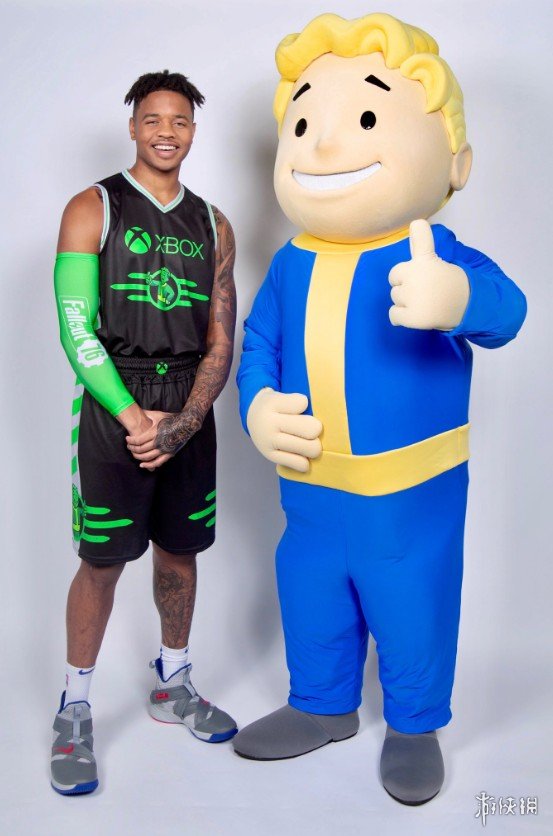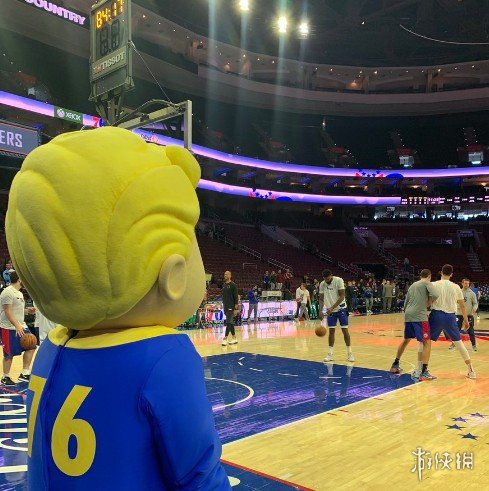 今日《辐射76》避难所小子架临NBA球队费城76人为Xbox one套装版做宣传,现场与球迷互动,发布了《辐射76》限定版T恤与《辐射76》球衣,并与2017年NBA状元马克尔·富尔茨联动拍摄真人宣传片,我们一起去欣赏一下吧!