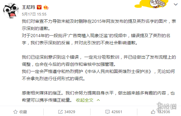 以下是道歉信原文: