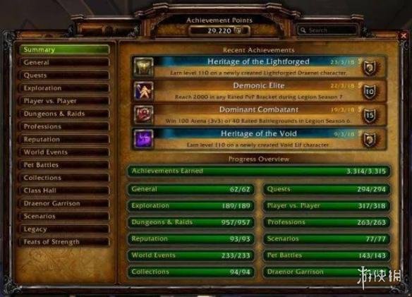 成就系统最早大约出自XBOX的奖杯系统,而早在2008年便已经实装“成就系统”的《魔兽世界》绝对称得上是这个时髦玩法的先行者。涵盖各类各处,既存在常规收集成就,也不乏挑战、剧情、趣味相关……直到今年的3月24日,《魔兽世界》中一共已有3314个成就,完成全部成就的玩家为此耗费了足足六年时间,可见其成就系统之厚度。