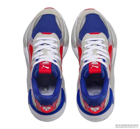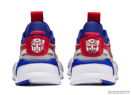 而“擎天柱”的款式则采取了经典的红,白,蓝配色,鞋子后方和鞋舌也是追加了汽车人的LOGO。