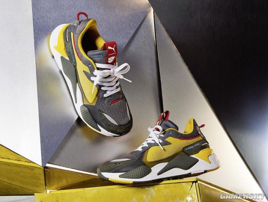 这款球鞋的基础设定是以PUMA的RS-X跑鞋为基底,在配色上采取了“大黄蜂”经典的灰黄配色,并且在鞋子的后方和鞋舌也有着汽车人的LOGO。