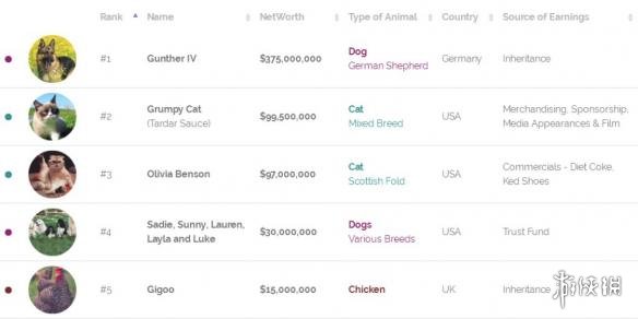 宠物富豪榜第五名