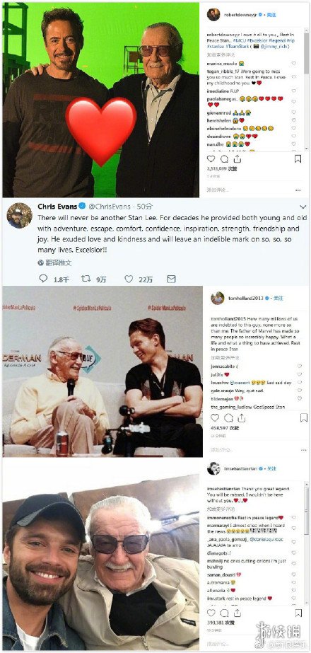在斯坦李去世之后,和斯坦李合作过的演员都发文悼念。