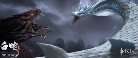 海报上方可以看到,身形庞大的白蛇、代表蛇族且化身巨蟒的蛇母,以及人类国师的坐骑大白鹤三妖呈现出三足鼎立的态势。只见三方势力全部怒目而视,相互嘶鸣,似乎会在下一秒使出奇招,将一方一招毙命。