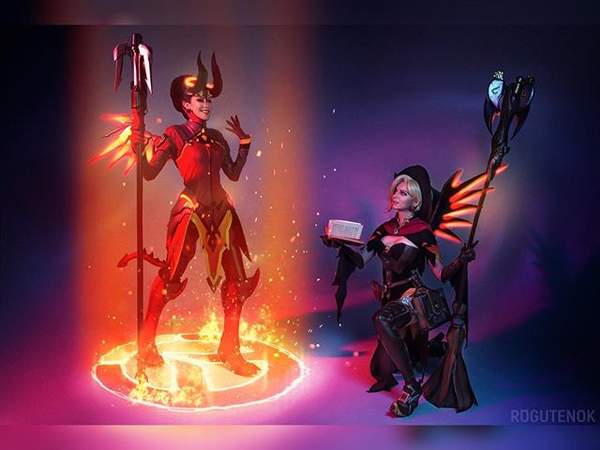 对于《守望先锋》中的女英雄,天使似乎更受Coser喜爱。最近有两名Coser同框出镜,一人扮演“女巫”皮肤的天使,另一人则扮演“女神”皮肤的天使,很是有点意思。