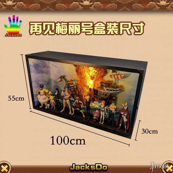 这款作品采用了JacksDo上一次在“卡二VS蛇人路飞”时使用的盒装场景技术,整体共有11个人物加上背景中高浮雕的着火梅丽号组成,长度达到了惊人的100厘米