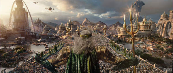 湄拉在新剧照中以新造型亮相,华美的典礼服装妆点着宏伟的亚特兰蒂斯王国。另一张剧照中,海王亚瑟手持五叉戟与湄拉站在一起,两人十分般配。
