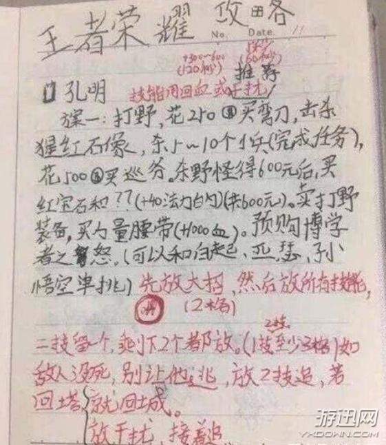 最近,随着腾讯推出《王者荣耀》实名认证以来,“小学生”确实少了很多,却又感觉少了点什么?虽然大部分都是坑,但有些小学生打游戏还是比较厉害的,玩游戏时特别认真,甚至会把《王者荣耀》的游戏攻略当作学习一样记到本子上,研究英雄技能、出装头头是道,一起来看看吧!