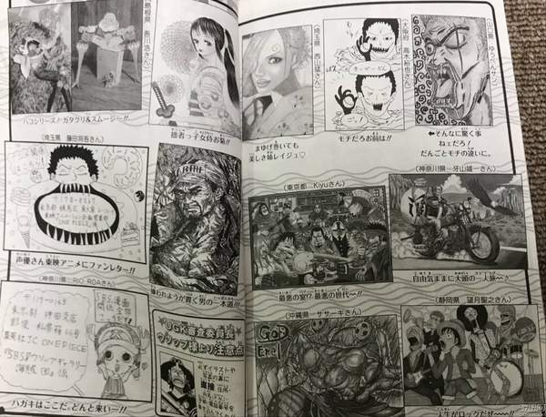 最后的读者投稿画作也是高手云集,路飞、卡塔库栗、老沙等人的绘画真是相当帅气。