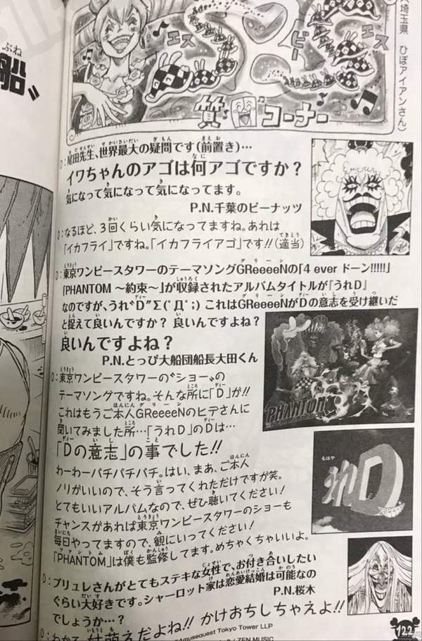 在扉页中熊猫人非常明显的出现了,居然是顶掉了重要的角色,难道以后熊猫人要转到台前了吗?还有读者表示非常喜欢布蕾,结果被尾田说是“妹控”。