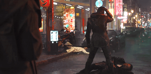 镜头16-18:都给我哭!!!失踪了2个半小时的鹰眼终于在日本街头迎来高光时刻!而且是忍者打扮!这是什么神仙剧情!至此为止,六大巨头已经全部在预告片里现身!
