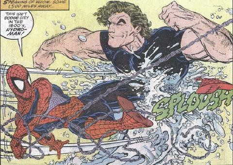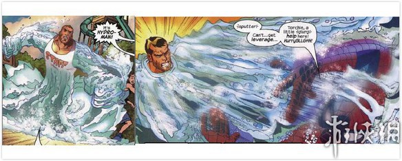 “水人”是水的化身、蜘蛛侠攻击他只是打出一滩水