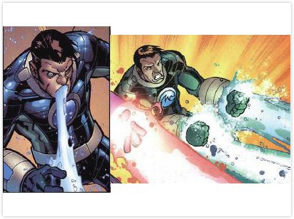 “水人”是水的化身,可以控制水的所有形态,其中最常见的是将手臂固化成冰刀,作为手拳或者投掷武器,气体化产生水蒸气作为投射武器,还可以控制水的容积变身巨大化形态,并且增加所有形态的水的质量,而且任何攻击都不会对身体造成破坏,因为他原来就是军人,所以他的格斗技巧非常好。