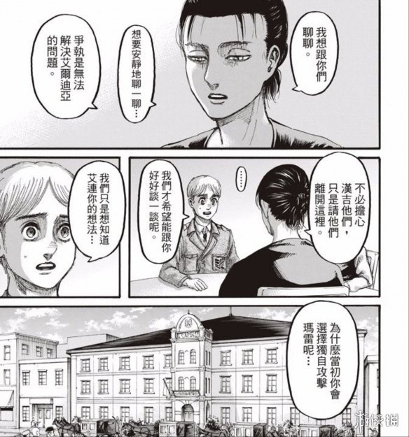 《进击的巨人》漫画也进入到了最终章,剧情已经向着更加的黑暗而去。从监狱逃走的艾伦已经策划好了很多事情,包括策反调查兵团成员,和吉克见面等等。感觉现在的艾伦和之前完全是判若两人,现在的艾伦更像是恶魔。艾伦为了得到吉克的下落带着跟随他的人找到韩吉他们,并且正式和三笠他们摊牌了。一起来看看吧!