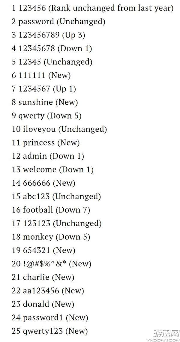 下面是SplashData列出的10个最糟糕密码。