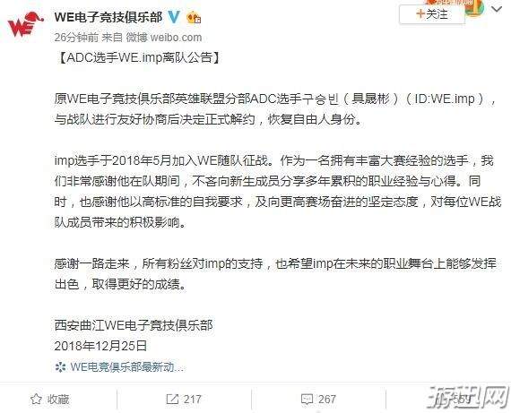 ADC选手WE.imp离队公告