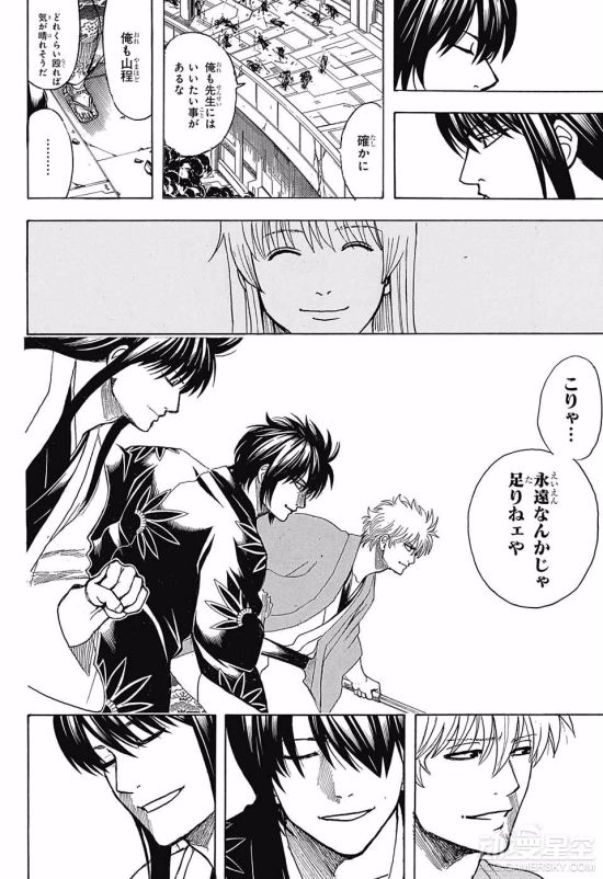根据最新的图透,这次《银魂》又全员龙珠化,开始了漫画一贯的恶搞风格,然而之后就开始了激烈的“老师夺还站”。在之前漫画的最后提到了银时、高杉等人想要夺回自己的老师松阳,最后三期应该就是围绕这个内容展开。这期的内容一共有54页,内容量相当多,估计后2期也和这个差不多,能讲述不少的内容。期待空知猩猩能在最后给大家带来更多的惊喜。