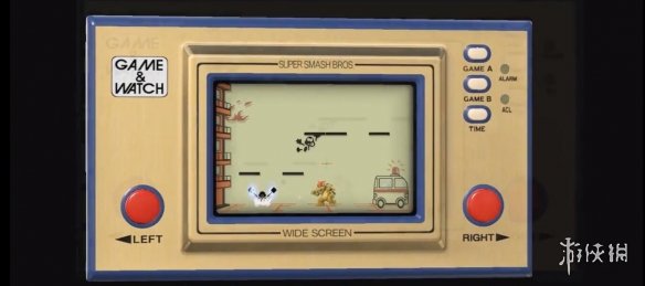 在“平面世界X”中,拉远视角后我们能发现,斗士们其实都是在一个老式的Game & Watch里战斗,甚至在其他地图中还是3D形象的斗士,在这张图里会变成3D渲染的2D形象。