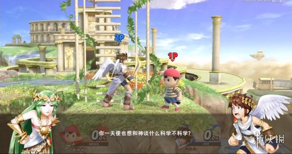 在之前作品中就是标配彩蛋的“火狐通讯”和“斯内克电台”也以皮特和几位女神吐槽小剧场的形式被继承。触发条件就是选择人物皮特和“Palutena's Temple”地图,然后在地图中非常短促的按“下嘲讽”(大概就几帧的判定,快速划过按键一般就能成功),就会触发满是笑点和槽点的小剧场。