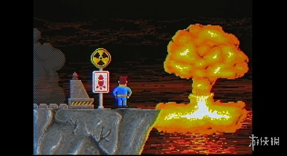 横板过关、BOSS战、微缩小地图的关卡预览等经典元素,结合《辐射》系列的变异生物、动力盔甲,系列特色的Q萌而血腥的画风以及末尾的核爆结局,看起来非常有趣。
