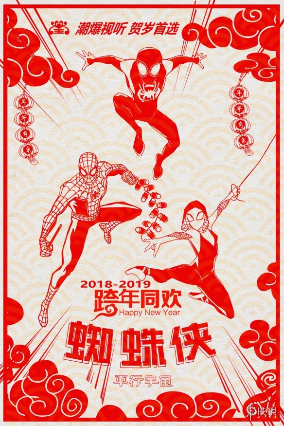 今日,《蜘蛛侠》系列电影在官方微博公布了一组中国剪纸风格的《蜘蛛侠:平行宇宙》海报,在2018与2019交接之际,邀请大家一起与“蜘蛛侠们”跨年同欢。