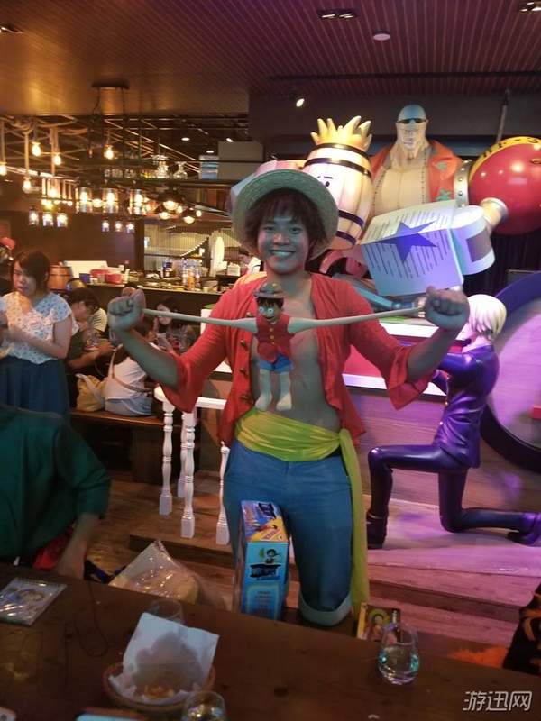 店里的人物造型都是按照一比一来进行仿制的,大家可以亲密接触到真实的草帽海贼团。连食物都充满了海贼王的气息,比如路飞四挡、绿藻头意粉、芬奇BF37等等,还有很多周边等着大家。