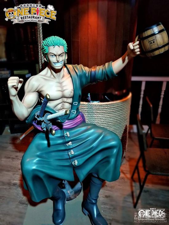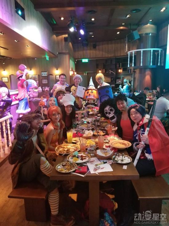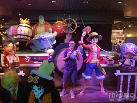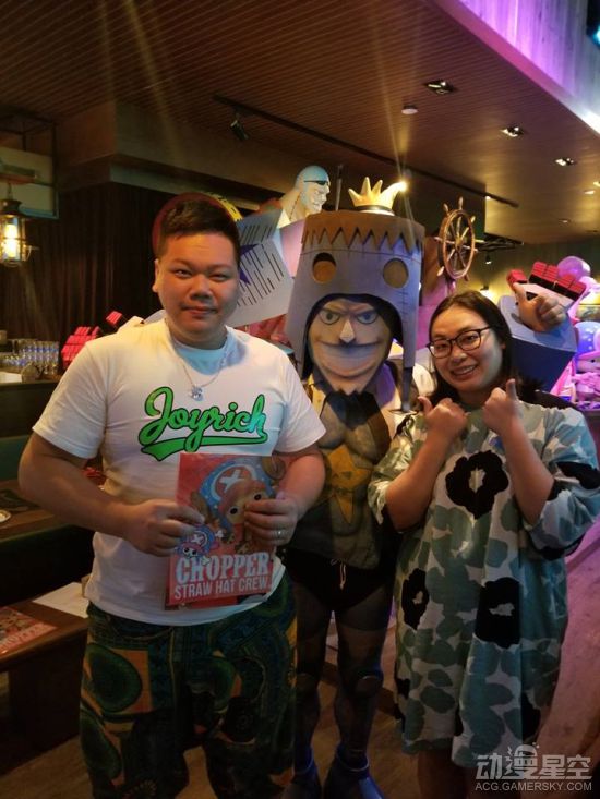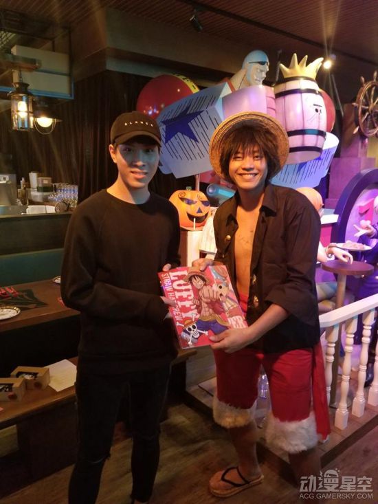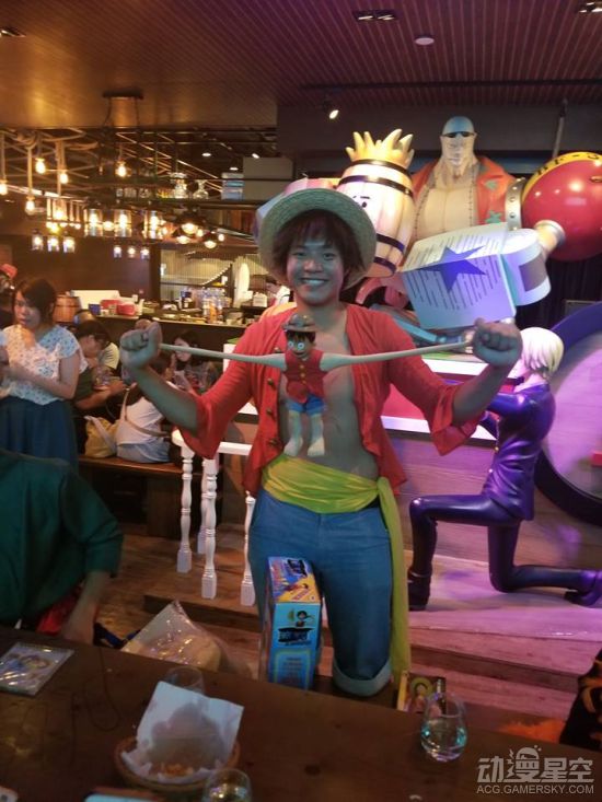 作为主题餐厅,光有餐点是不够了,最重要的是氛围,角色们的等身雕像,服务员COS《海贼王》角色,让顾客更有身临其境的感觉。