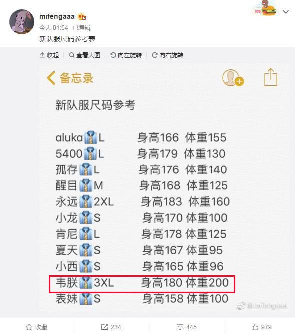 比如被实锤真·200斤的韦神。作为4AM的重量级选手,韦酱体重200,队服尺寸都是3XL。