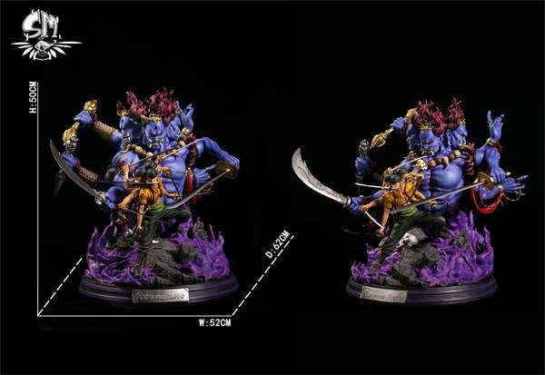 索隆鬼气九刀流雕像尺寸相当的大,高50cm宽52cm深62cm,国内一共发售330体,售价为3288元,定金为1288元,于1月8日开订。