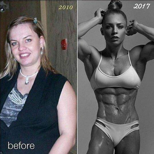 Eleonora Dobrinina来自俄罗斯,在14岁是受到父亲的影响开始健身, 16岁是开始到健身房训练,但是生完孩子后的生活习惯改变了她,让她变得肥胖不已。此时当她看到自己增加的体重是,意识到自己需要做点什么了。