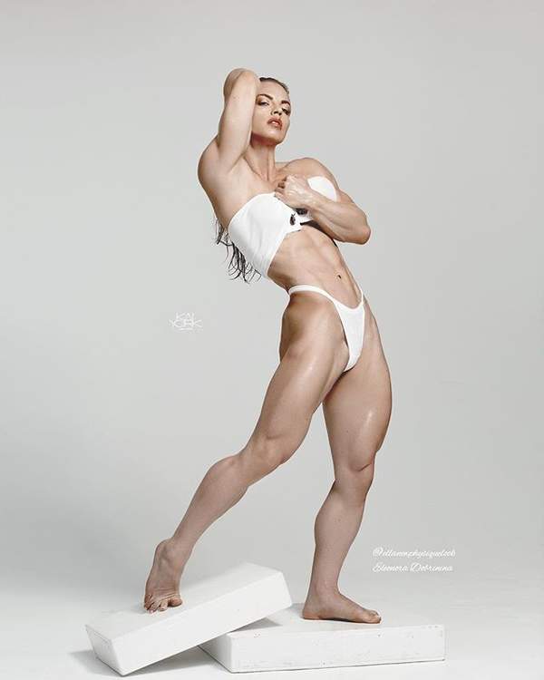 拥有了这样的身材,当然也参加了不少健美比赛,Eleonora Dobrinina每次都是获奖的热门。很多专业人士都劝说她这样的极端的健身对自身有着极大的伤害,因为对于女性来说:维持月经正常的体脂率至少为17%,维持女性生殖能力的体脂率至少为22%。