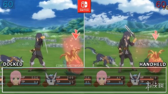 视频中展示了在各个场景下以及剧情动画中,两种模式下的画面效果,可以看到主机模式的画面清晰度要高一些,掌机模式的画面略有锯齿,但整体上差距并不是很大。帧数方面,在城镇和野外都可以维持在40帧以上,相当稳定。而且由于两种模式的性能并没有什么差别,所以掌机模式下的帧数还要稍微高上一点。因为进入战斗就会切换至独立的场景,所以战斗场景下能够稳定保持在60帧,可以说是丝般顺滑了。