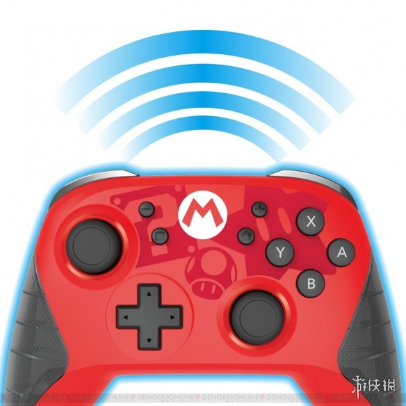 该手柄在约10m的左右的无线通讯距离内可以尽情地享受游戏乐趣。这款马里奥红色的无线手柄上有着《超级马里奥》系列熟知的问号砖块、蘑菇和星星图案的设计,使得手柄看上去不会那么的单调,简单又俏皮。