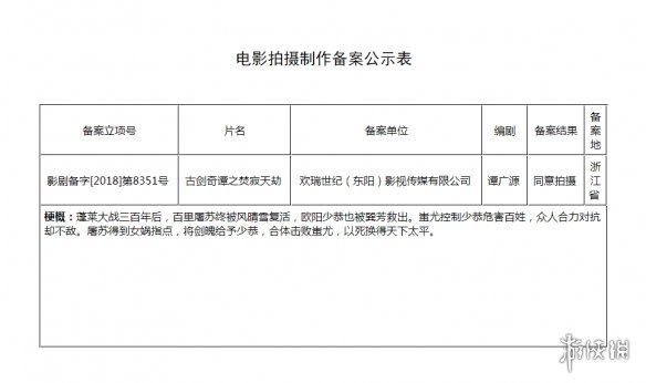 小编在公示中发现,两部《古剑奇谭》电影已经同意拍摄,分别是《古剑奇谭之琴心剑魄》和《古剑奇谭之焚寂天劫》,均由欢瑞世纪(东阳)影视传媒有限公司出品,编剧为谭广源。